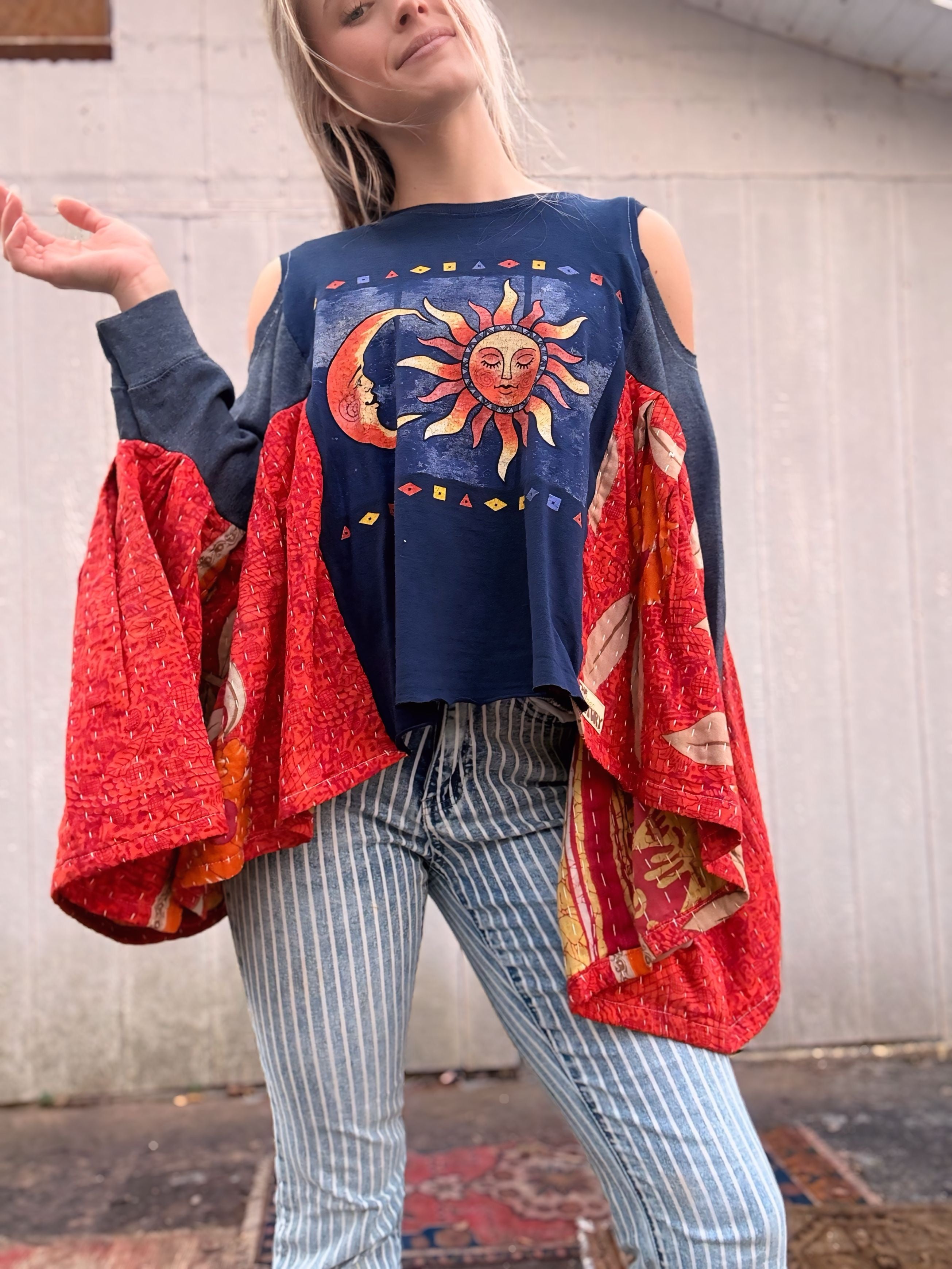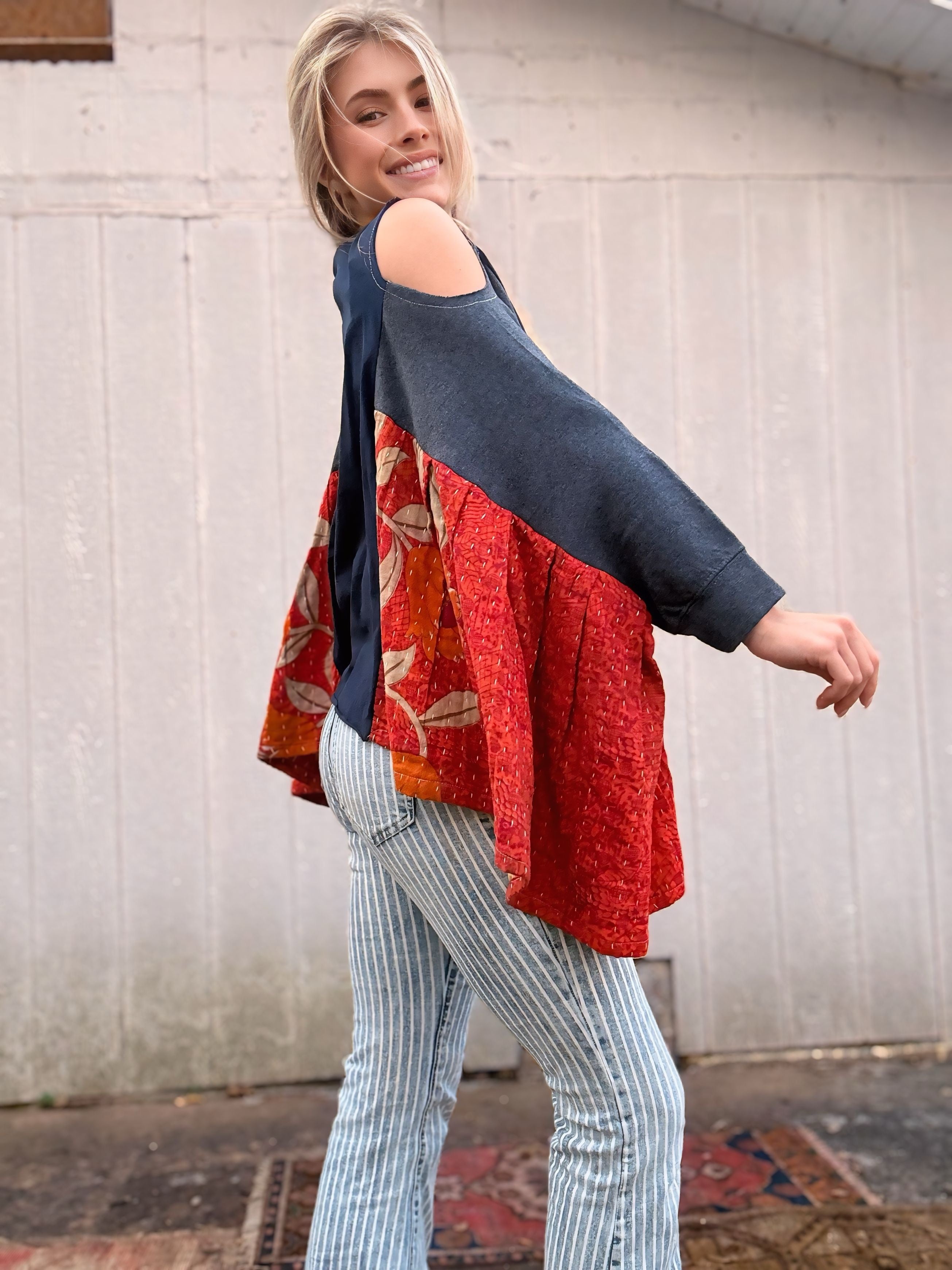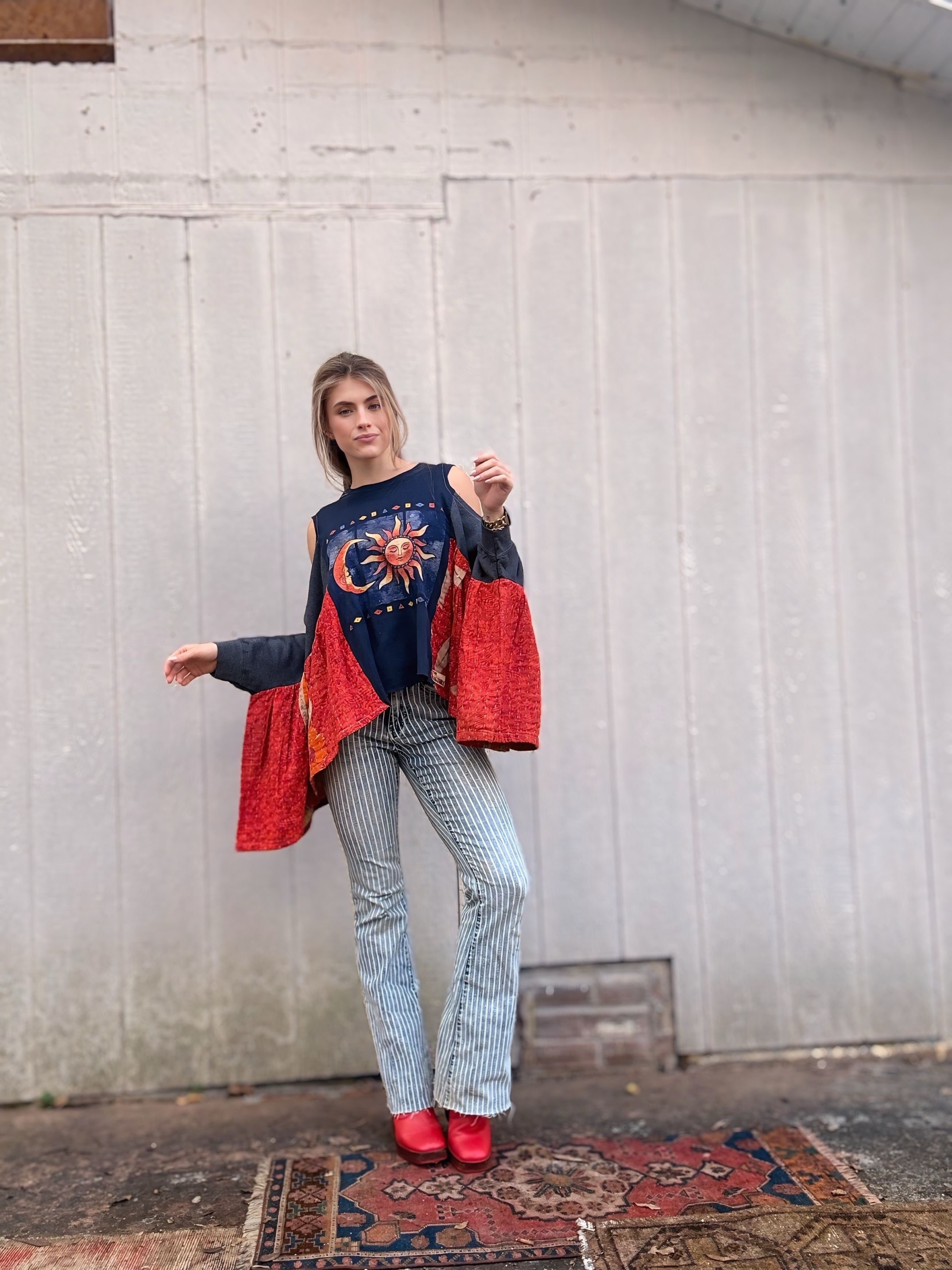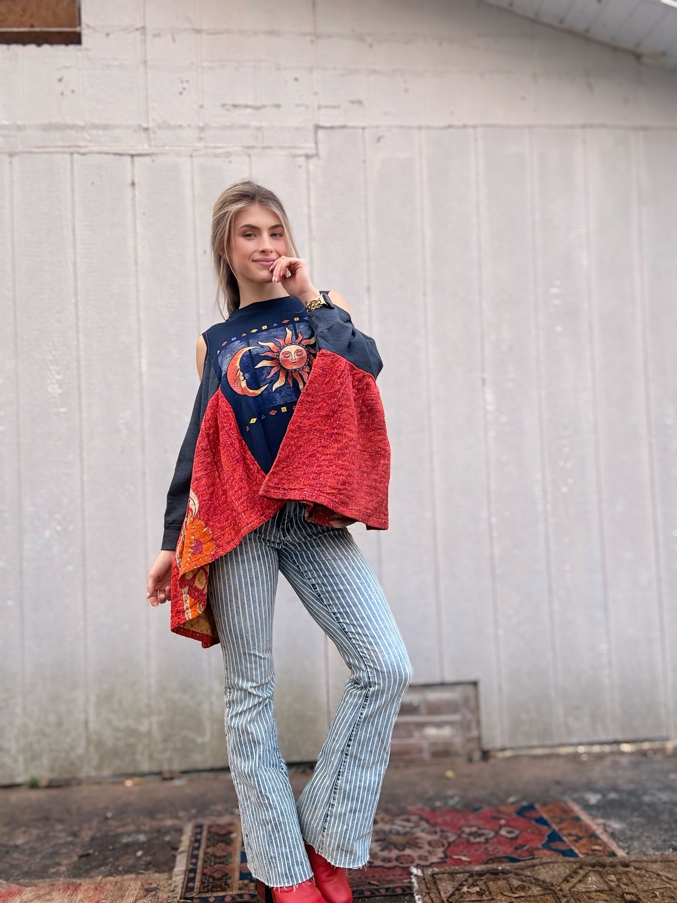 Every material we use has already lived a full and vibrant life. We embrace the art of hand dyeing many of our pieces, resulting in unique designs. While you may notice minor stains and holes, these do not compromise the quality of the garment. Instead, we view these imperfections as part of its story, and we hope you find the beauty in them too.