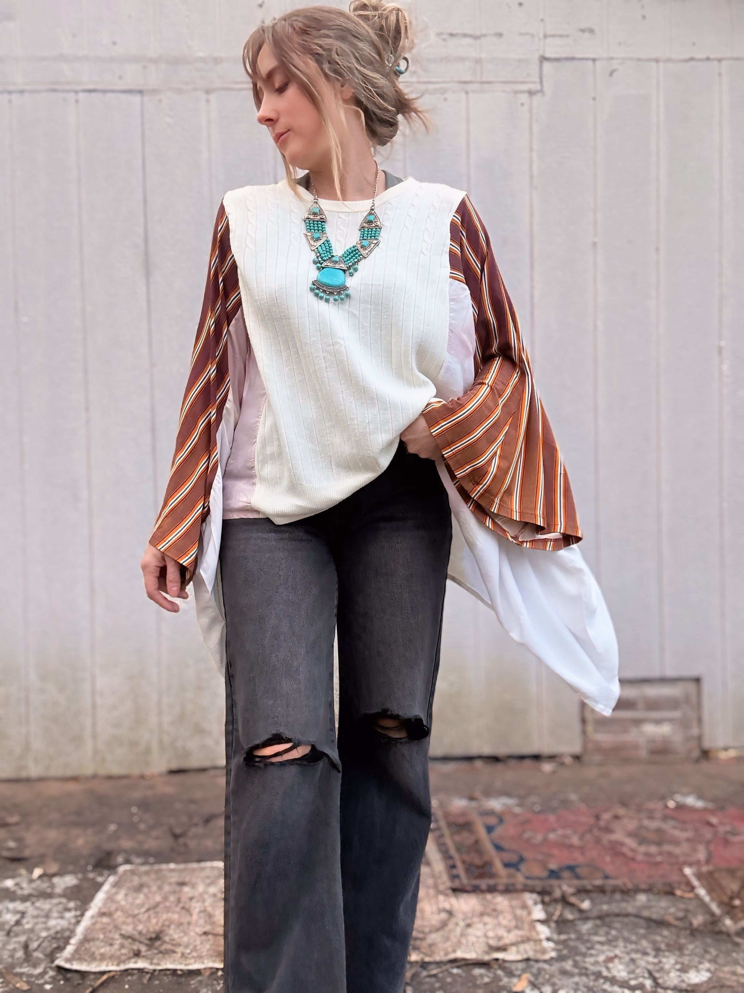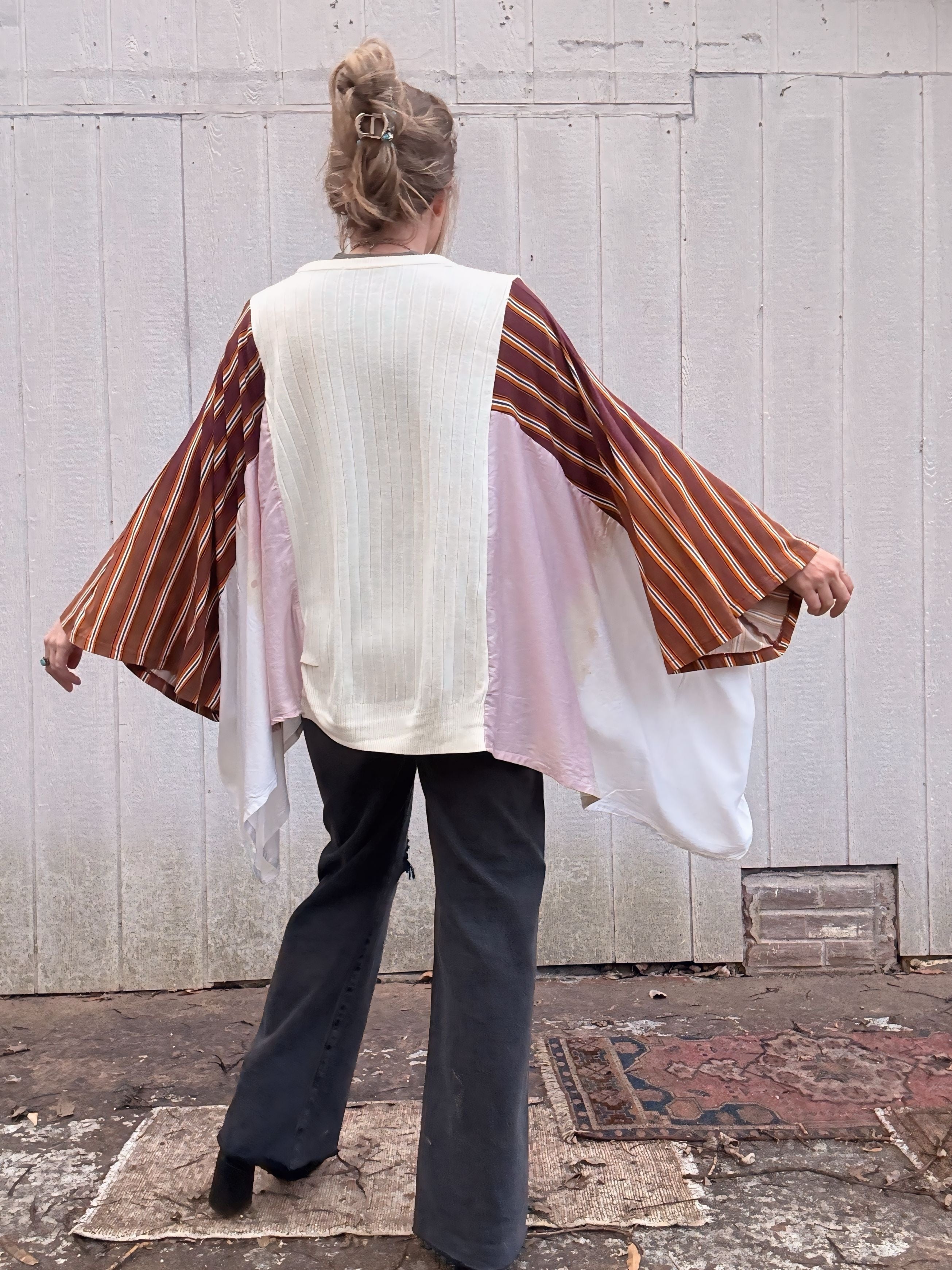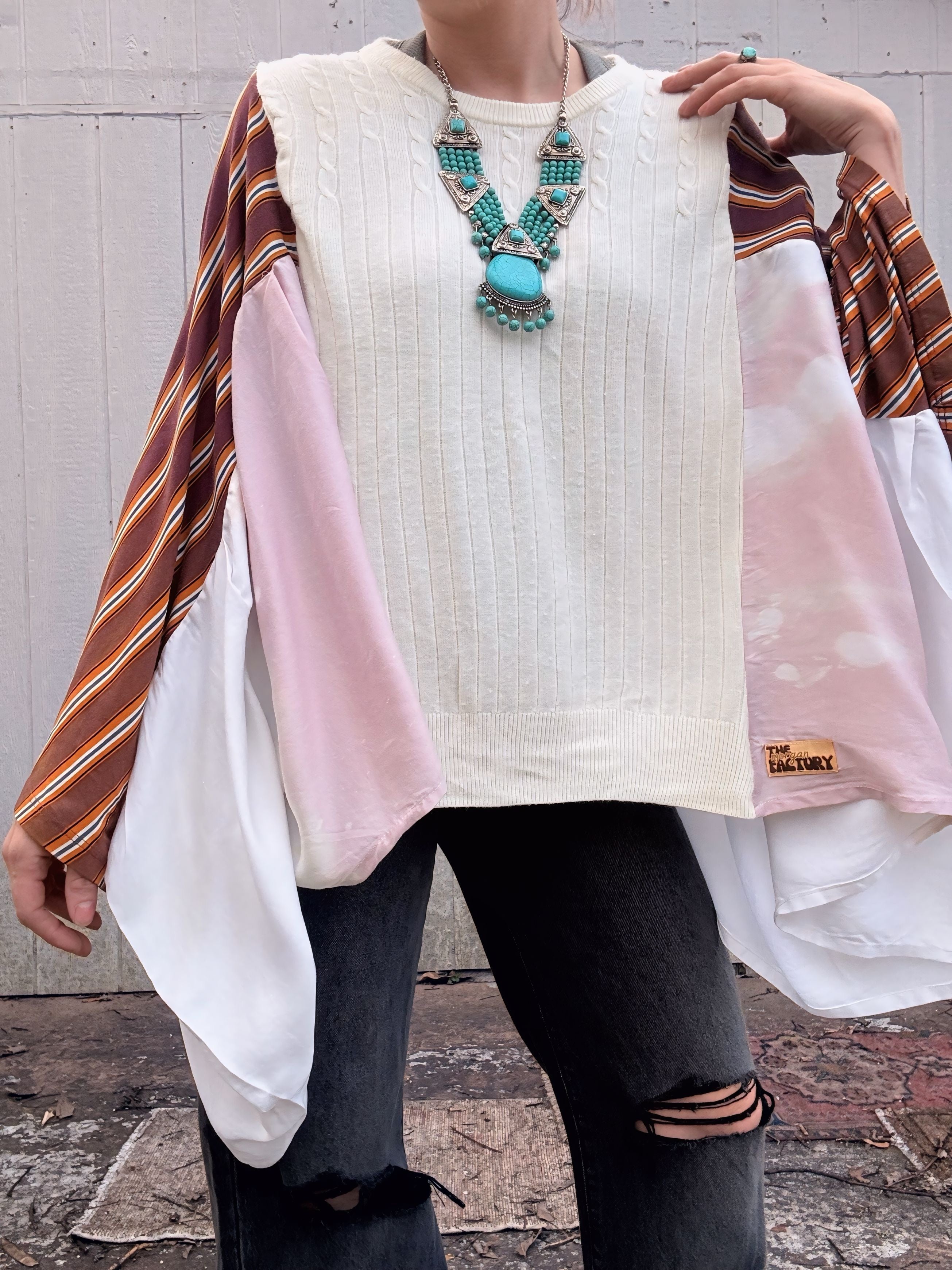 Every material we use has already lived a full and vibrant life. We embrace the art of hand dyeing many of our pieces, resulting in unique designs. While you may notice minor stains and holes, these do not compromise the quality of the garment. Instead, we view these imperfections as part of its story, and we hope you find the beauty in them too.
