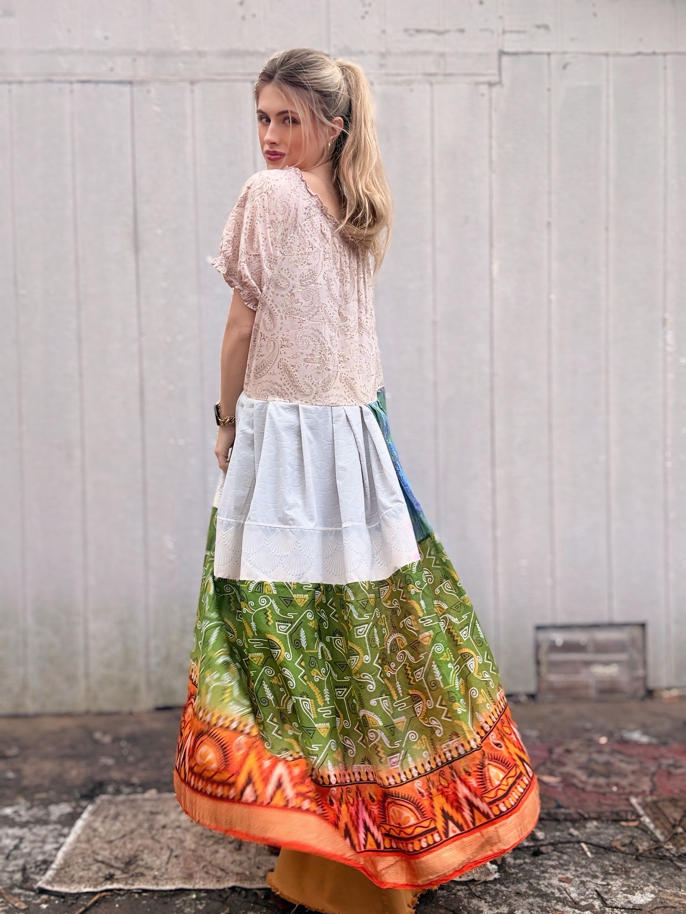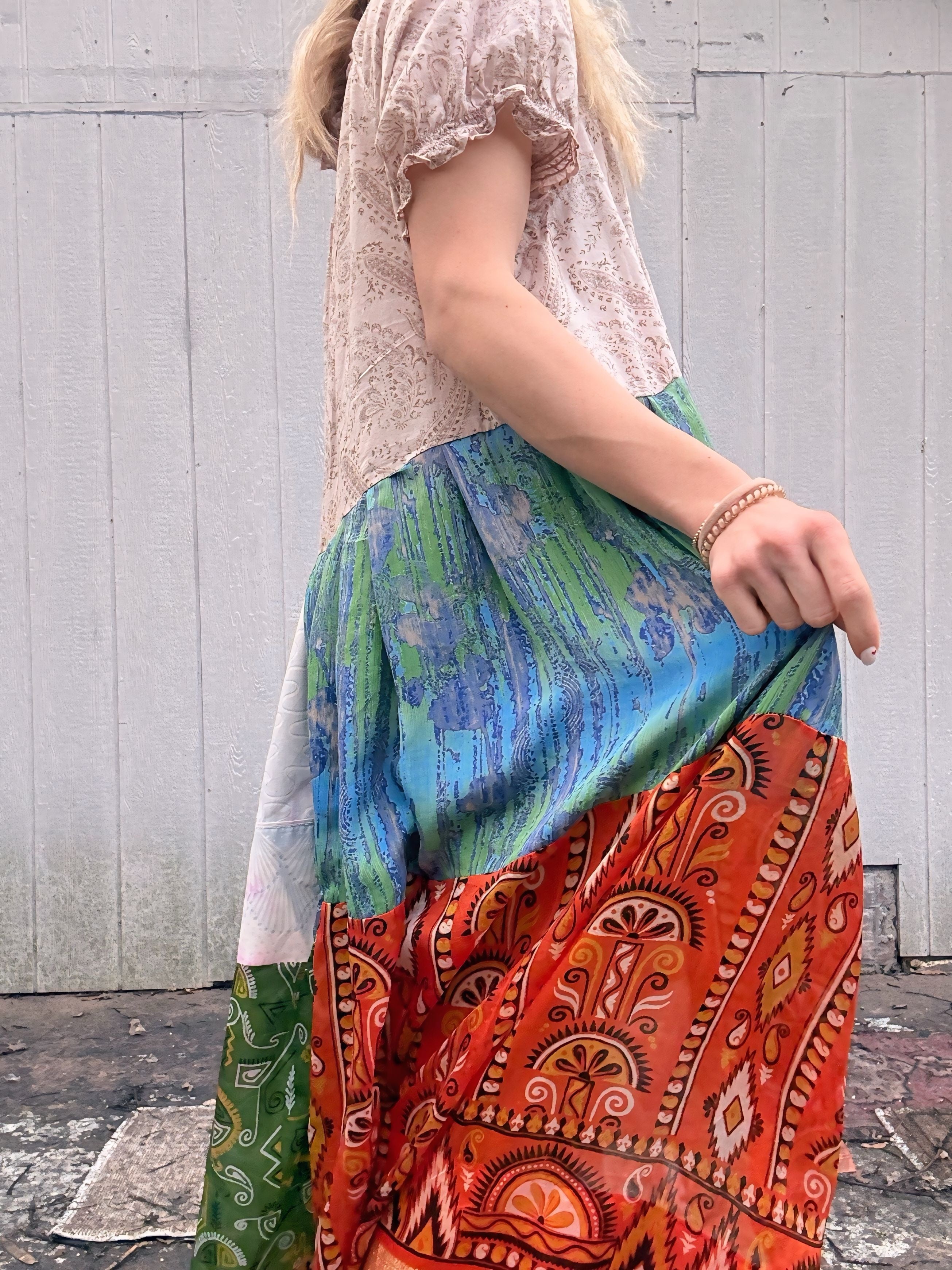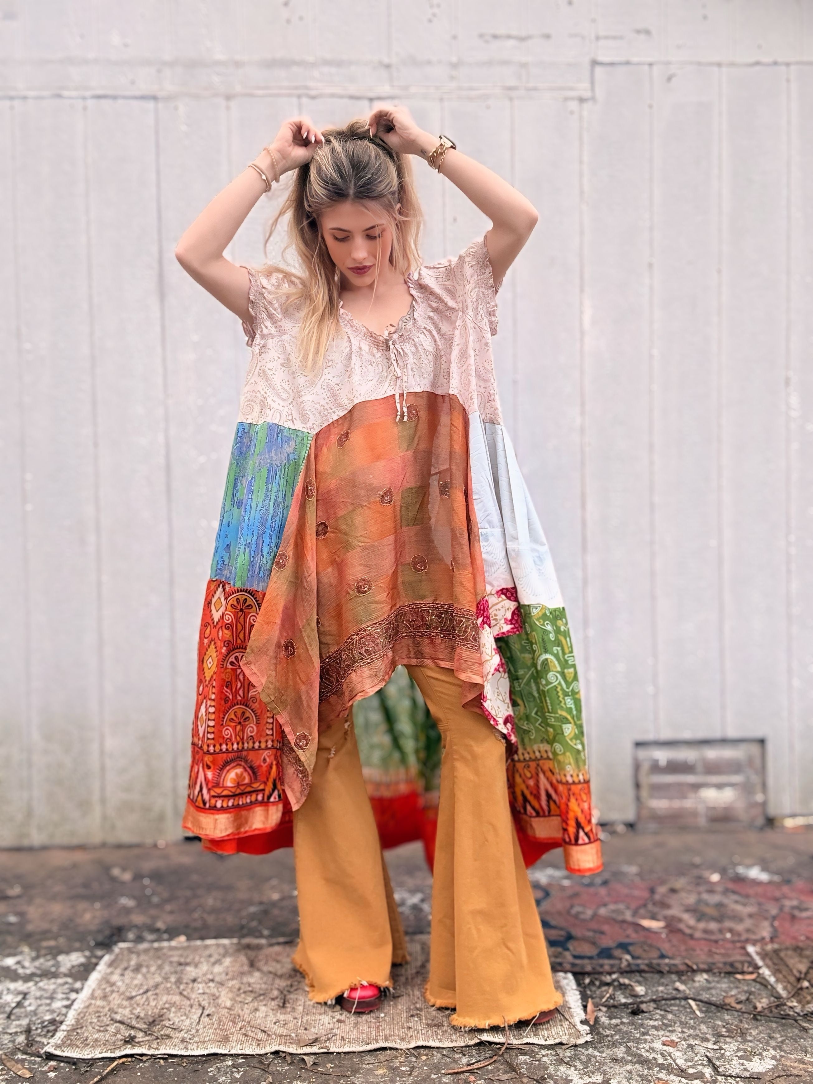 Floral Patchwork Peasant Tunic - XL/2X/3X