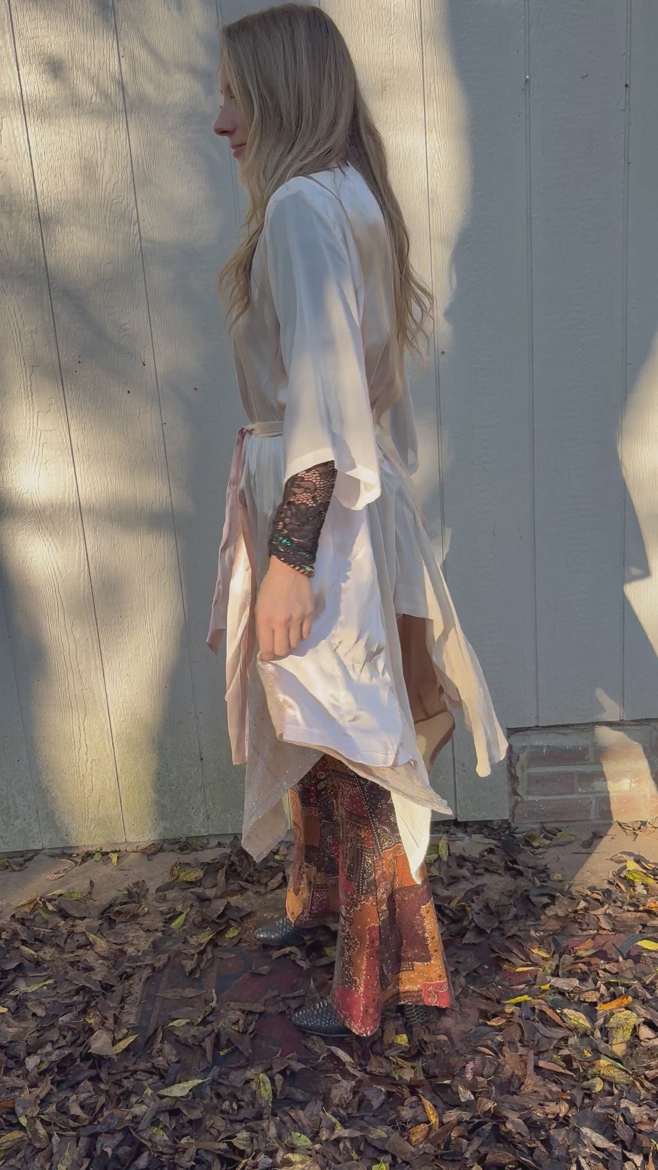 *Please remember all of the materials we use have lived a full life already. We hand dye a lot of our clothing as part of the artistic design. However, small stains and holes may still be present and do not affect the quality of the garment. We look at these imperfections as a part of a story instead of a flaw. We hope you will see the beauty too.