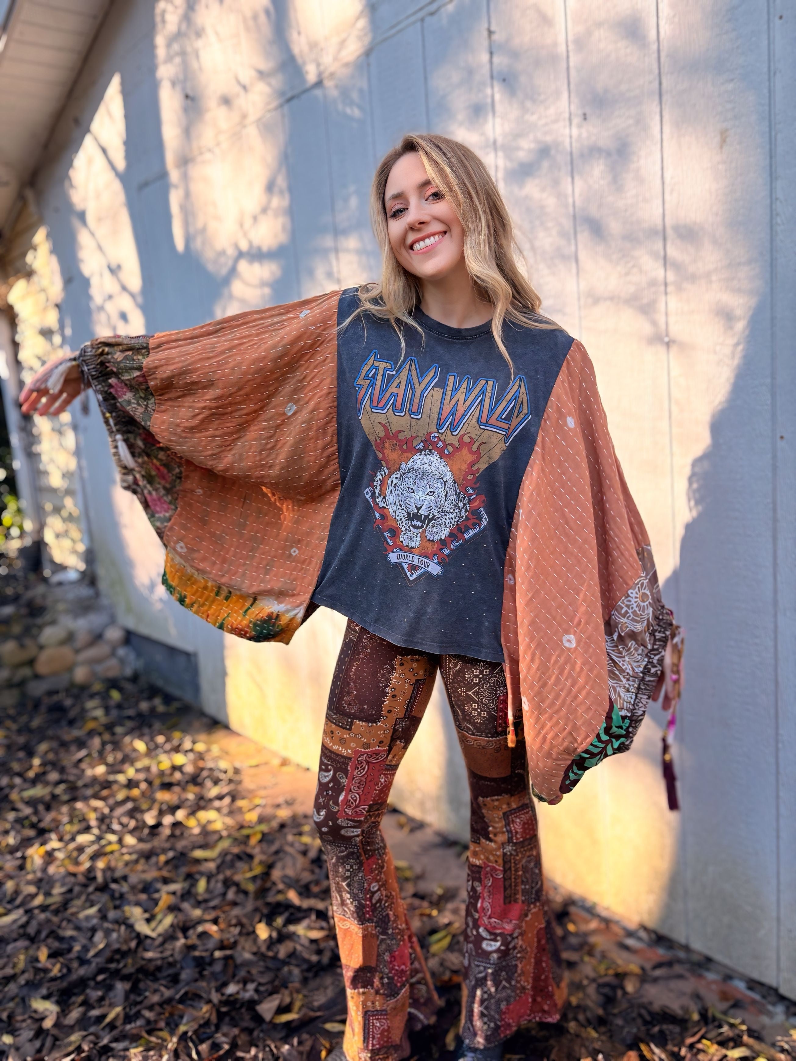 Stay Wild Kantha Scrunch Sleeve Top - Free Size
