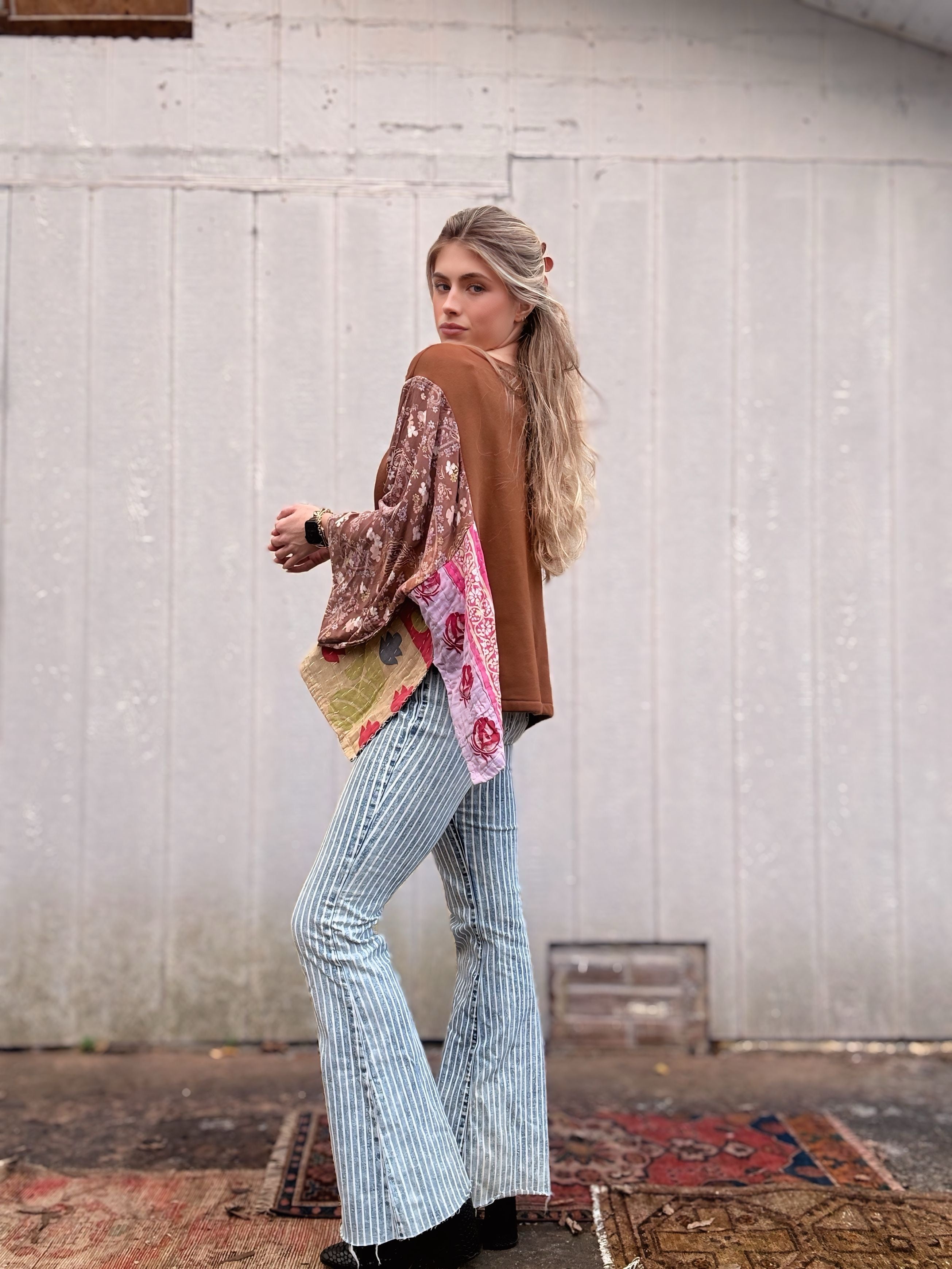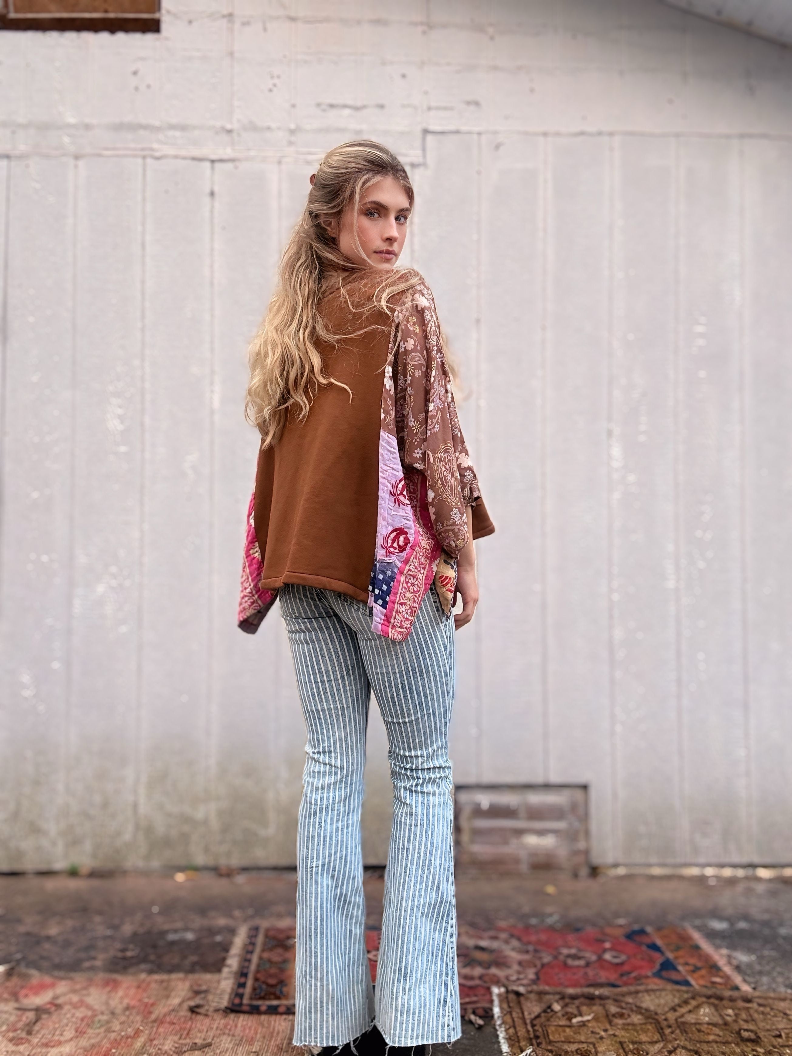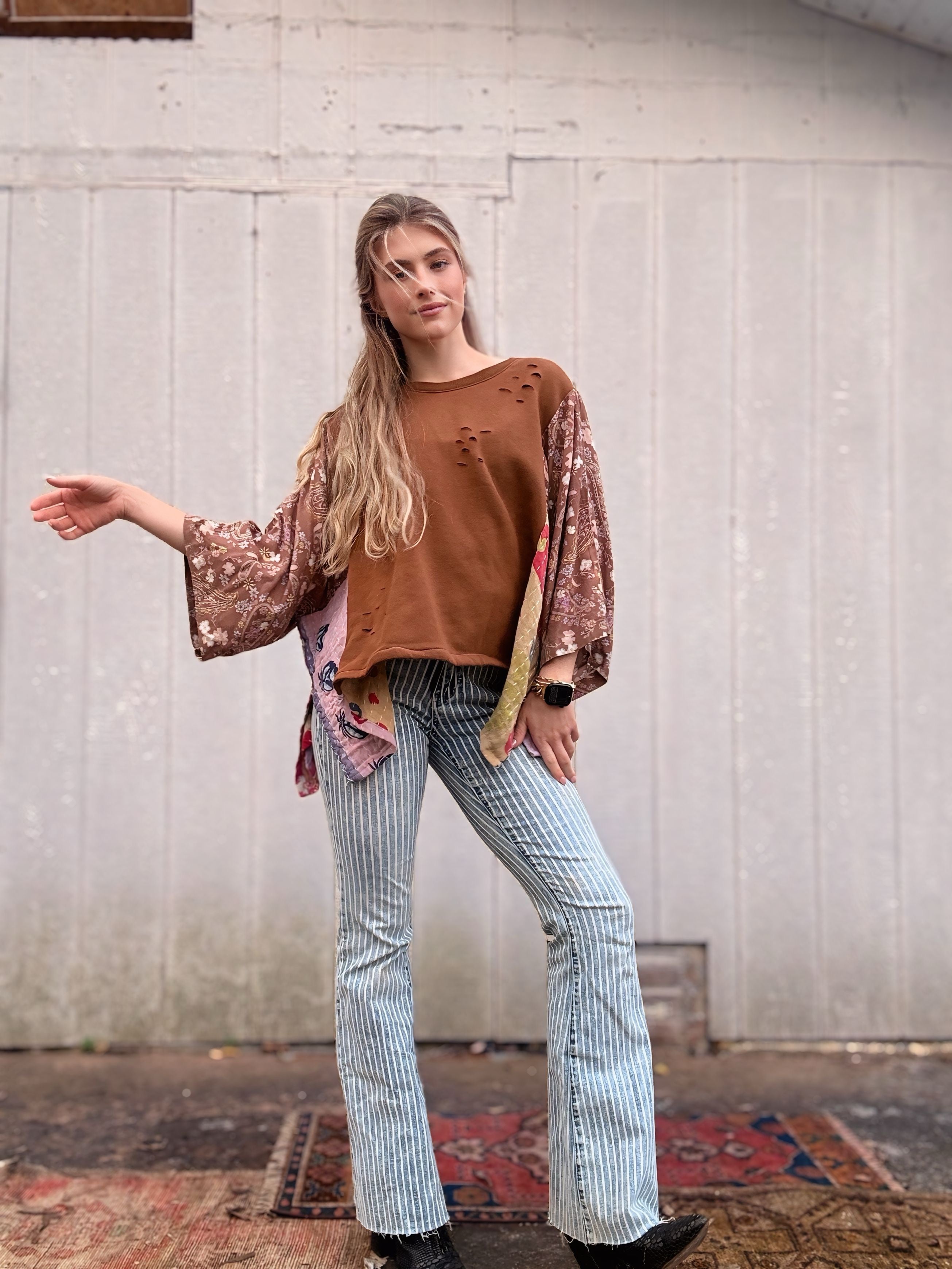 Every material we use has already lived a full and vibrant life. We embrace the art of hand dyeing many of our pieces, resulting in unique designs. While you may notice minor stains and holes, these do not compromise the quality of the garment. Instead, we view these imperfections as part of its story, and we hope you find the beauty in them too.