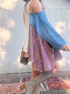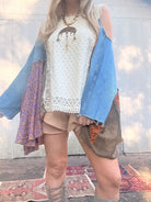 Denim + Lace Cold Shoulder Swing Top - Free Size
