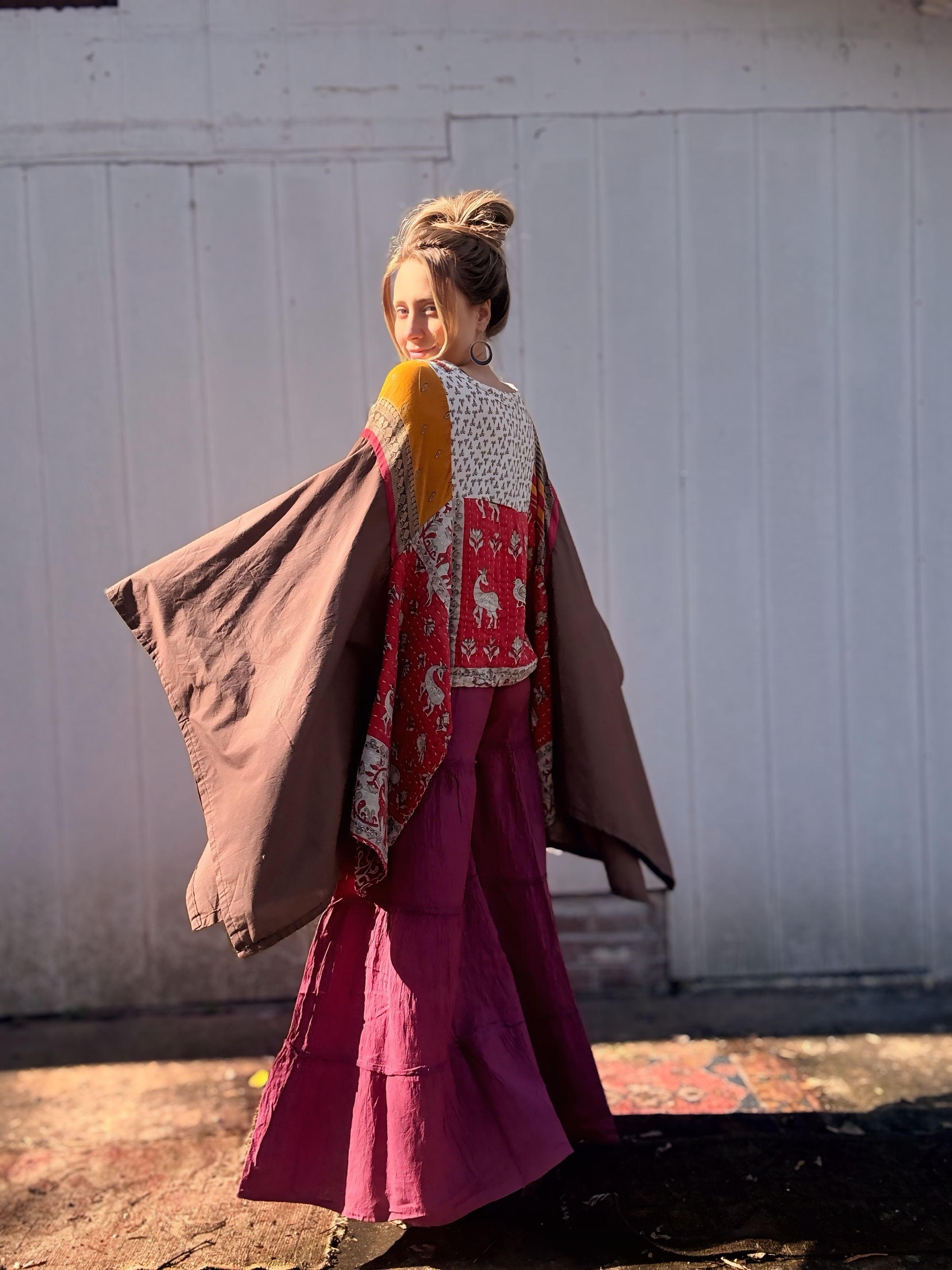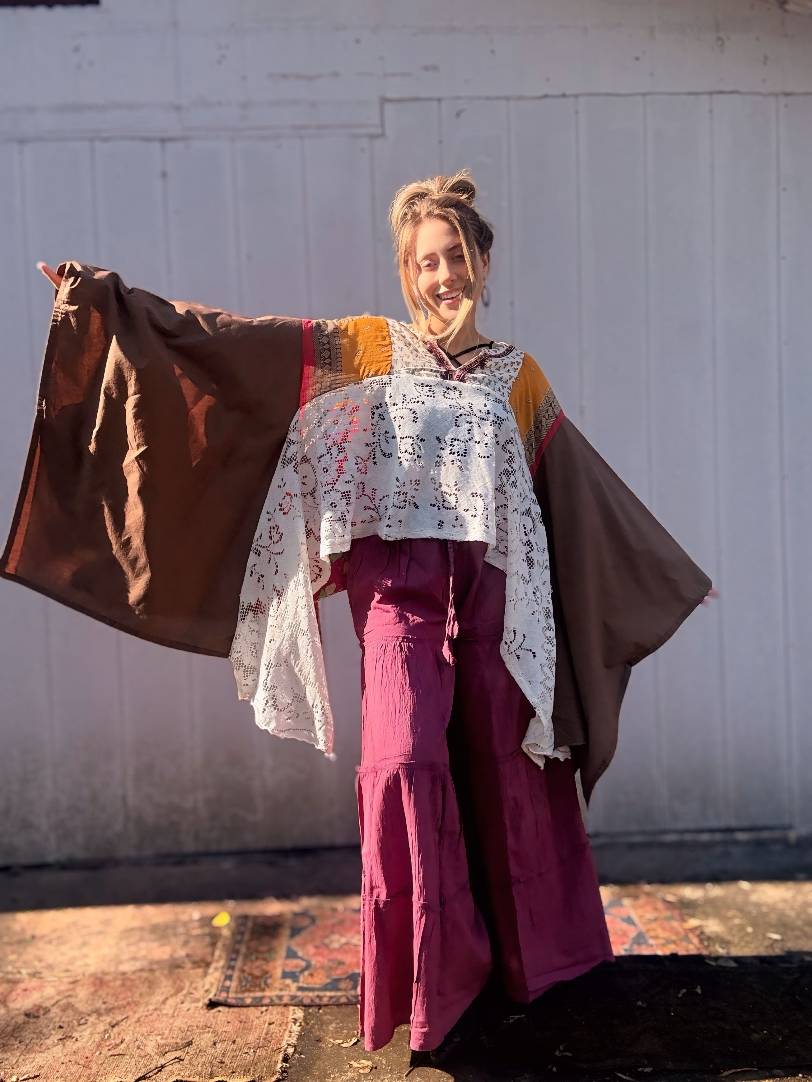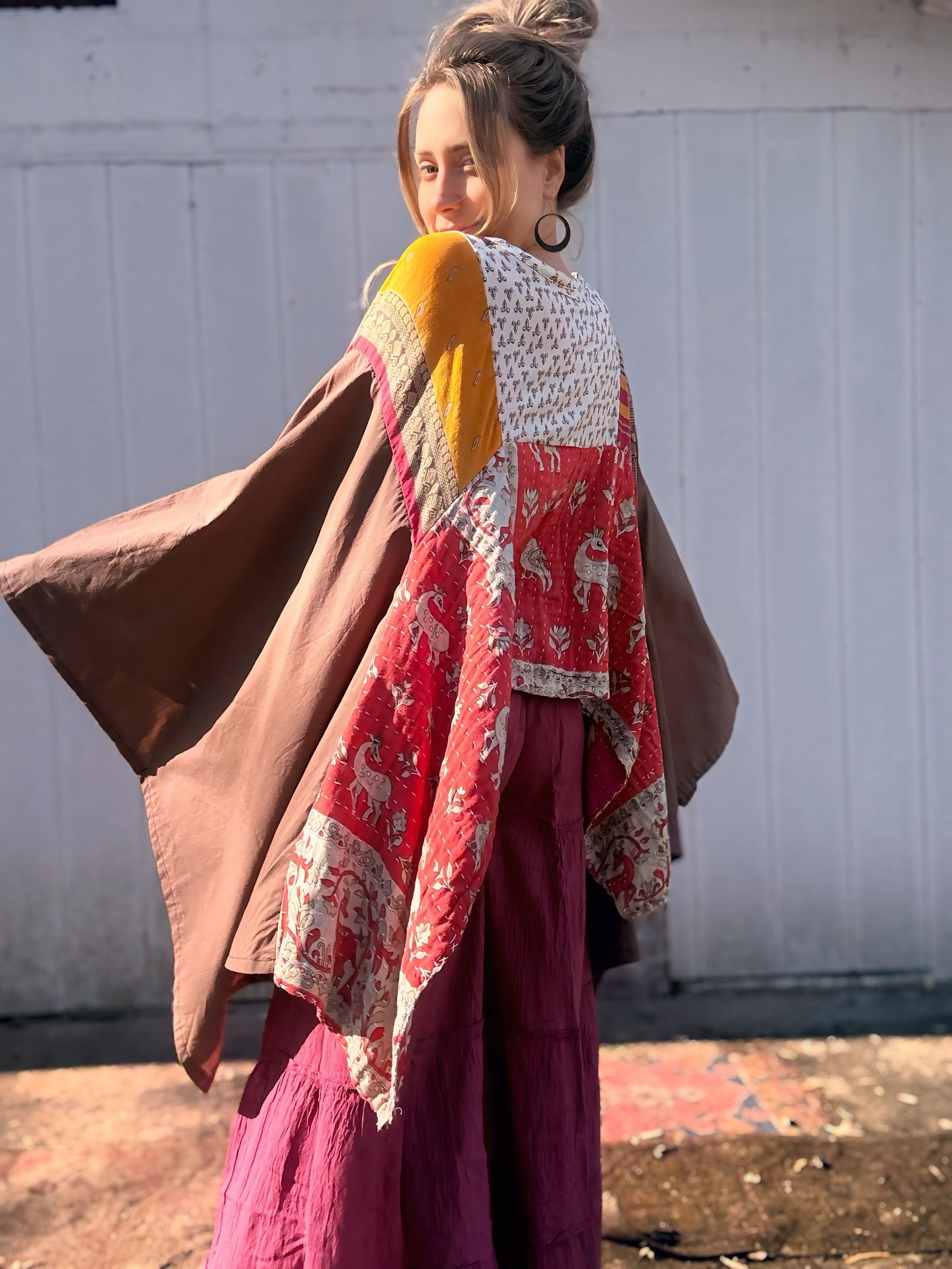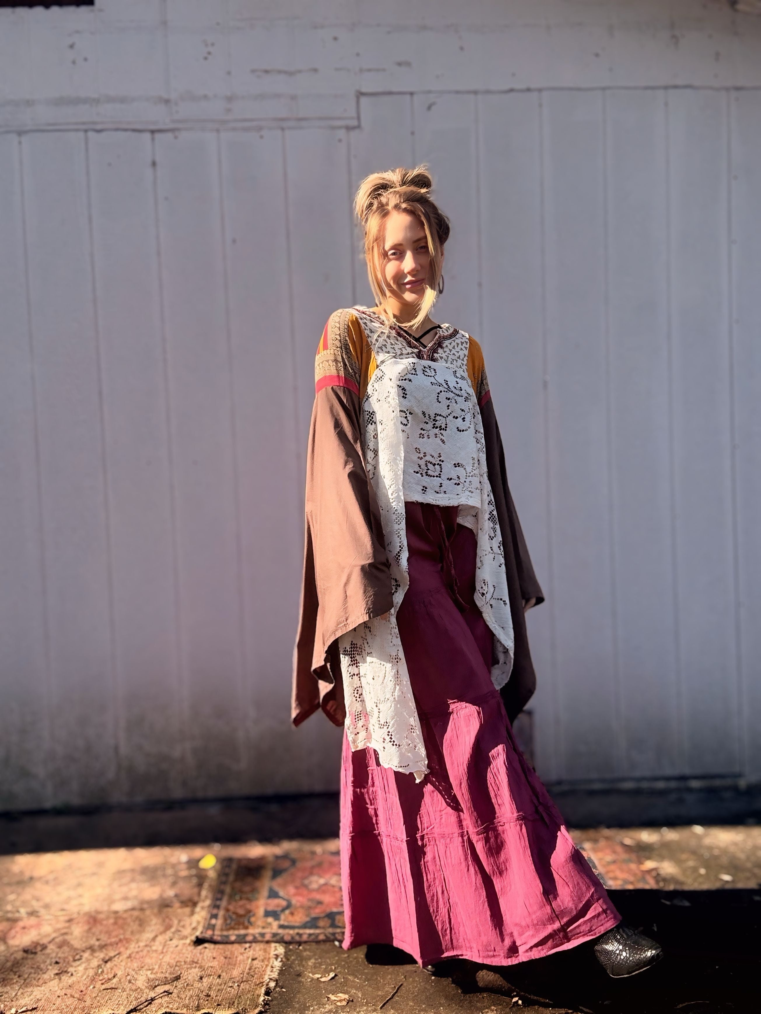 Every material we use has already lived a full and vibrant life. We embrace the art of hand dyeing many of our pieces, resulting in unique designs. While you may notice minor stains and holes, these do not compromise the quality of the garment. Instead, we view these imperfections as part of its story, and we hope you find the beauty in them too.