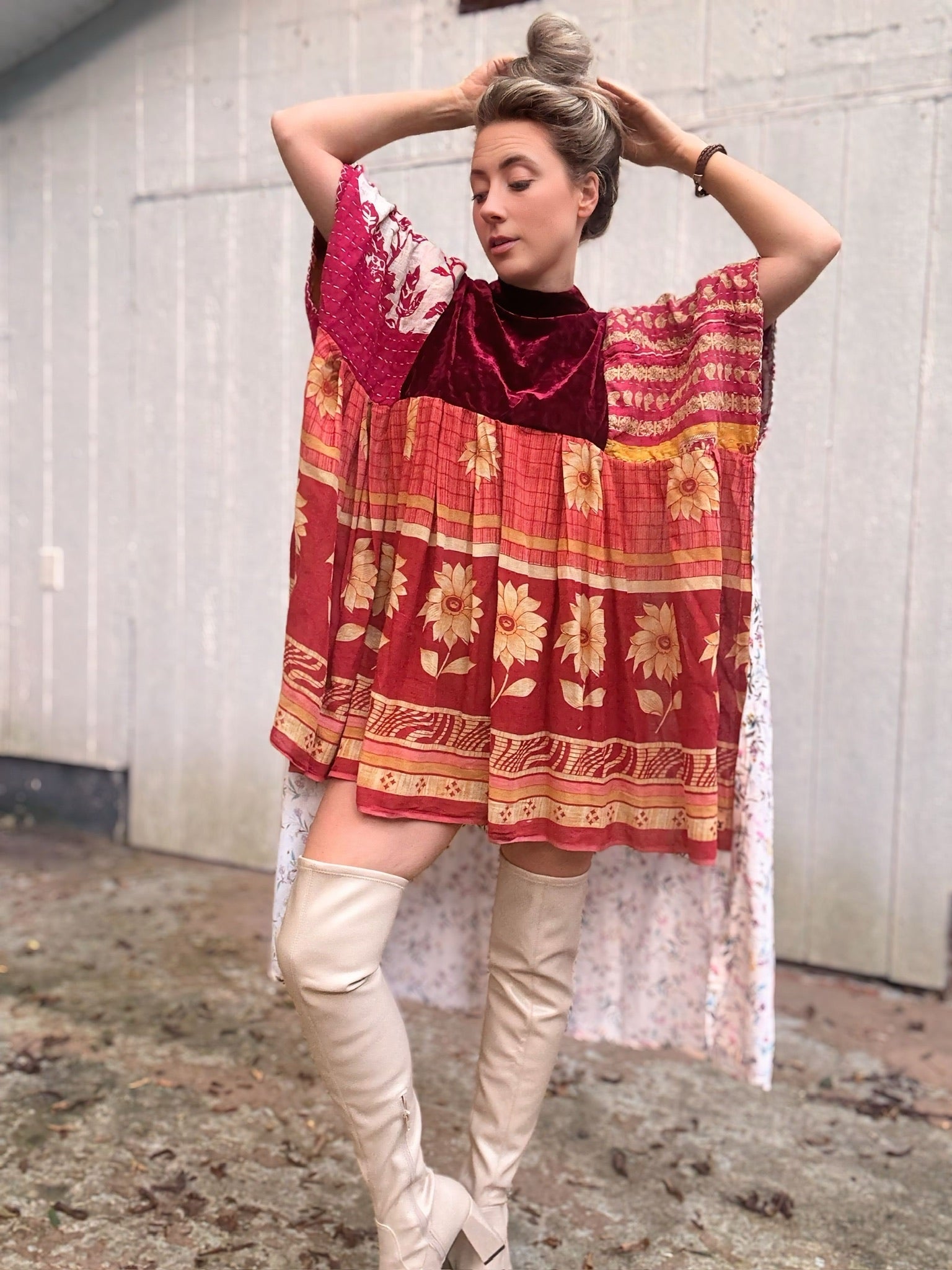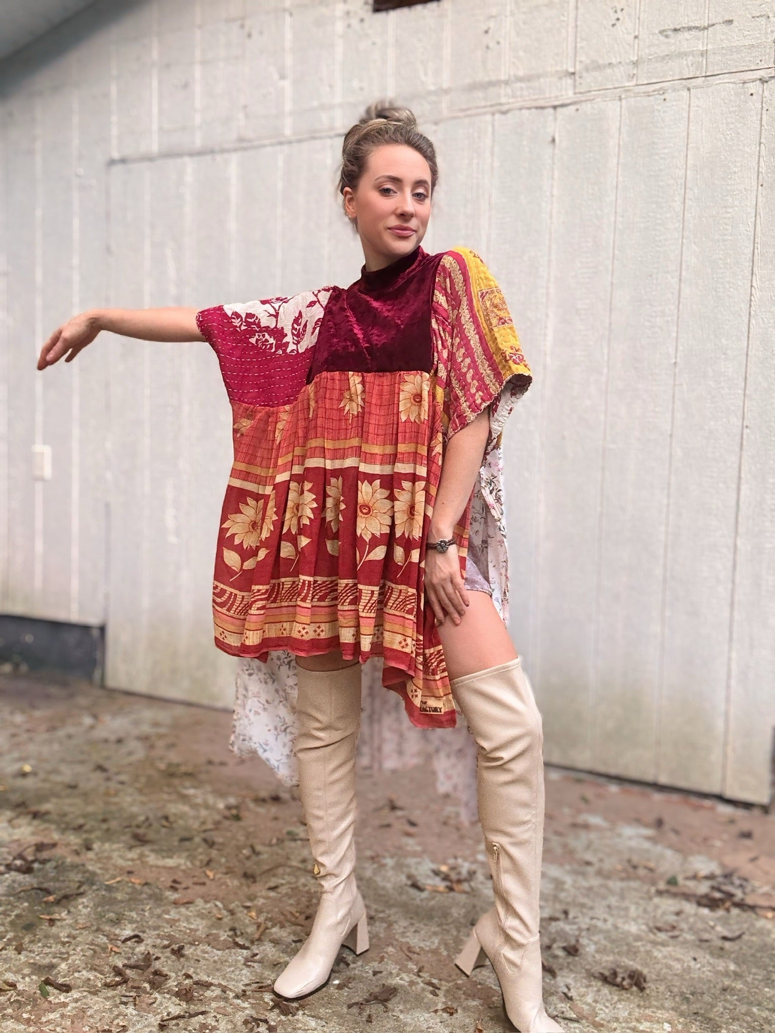 *Please remember all of the materials we use have lived a full life already. We hand dye a lot of our clothing as part of the artistic design. However, small stains and holes may still be present and do not affect the quality of the garment. We look at these imperfections as a part of a story instead of a flaw. We hope you will see the beauty too.