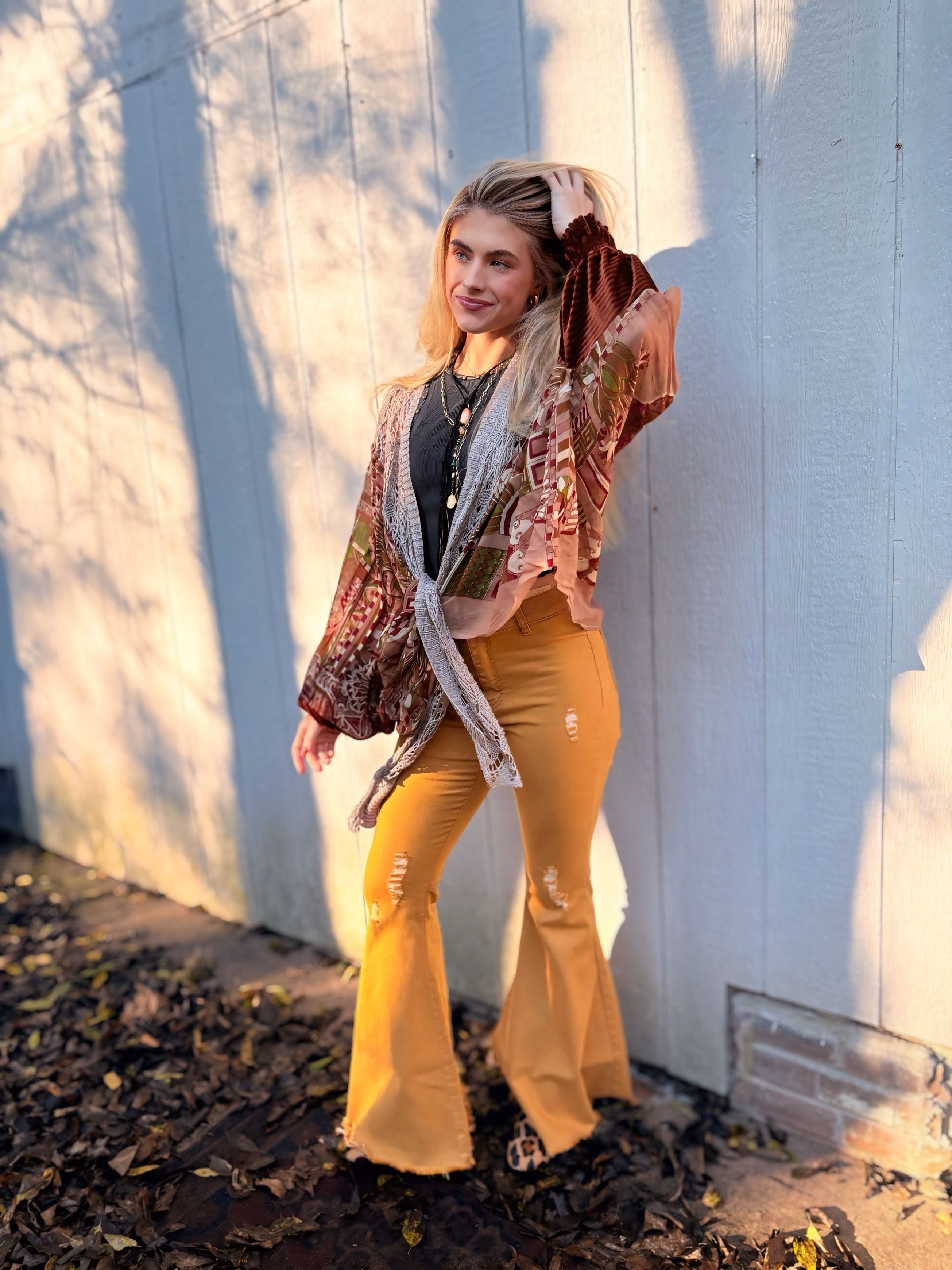 *Please remember all of the materials we use have lived a full life already. We hand dye a lot of our clothing as part of the artistic design. However, small stains and holes may still be present and do not affect the quality of the garment. We look at these imperfections as a part of a story instead of a flaw. We hope you will see the beauty too.