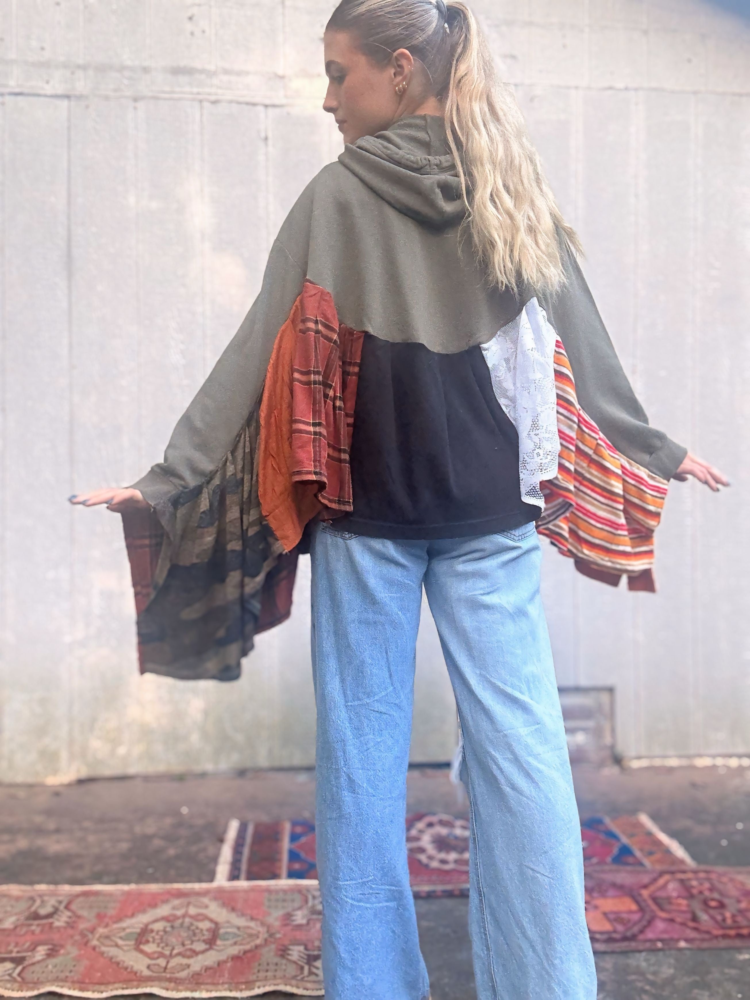 *Please remember all of the materials we use have lived a full life already. We hand dye a lot of our clothing as part of the artistic design. However, small stains and holes may still be present and do not affect the quality of the garment. We look at these imperfections as a part of a story instead of a flaw. We hope you will see the beauty too.