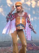 *Please remember all of the materials we use have lived a full life already. We hand dye a lot of our clothing as part of the artistic design. However, small stains and holes may still be present and do not affect the quality of the garment. We look at these imperfections as a part of a story instead of a flaw. We hope you will see the beauty too.