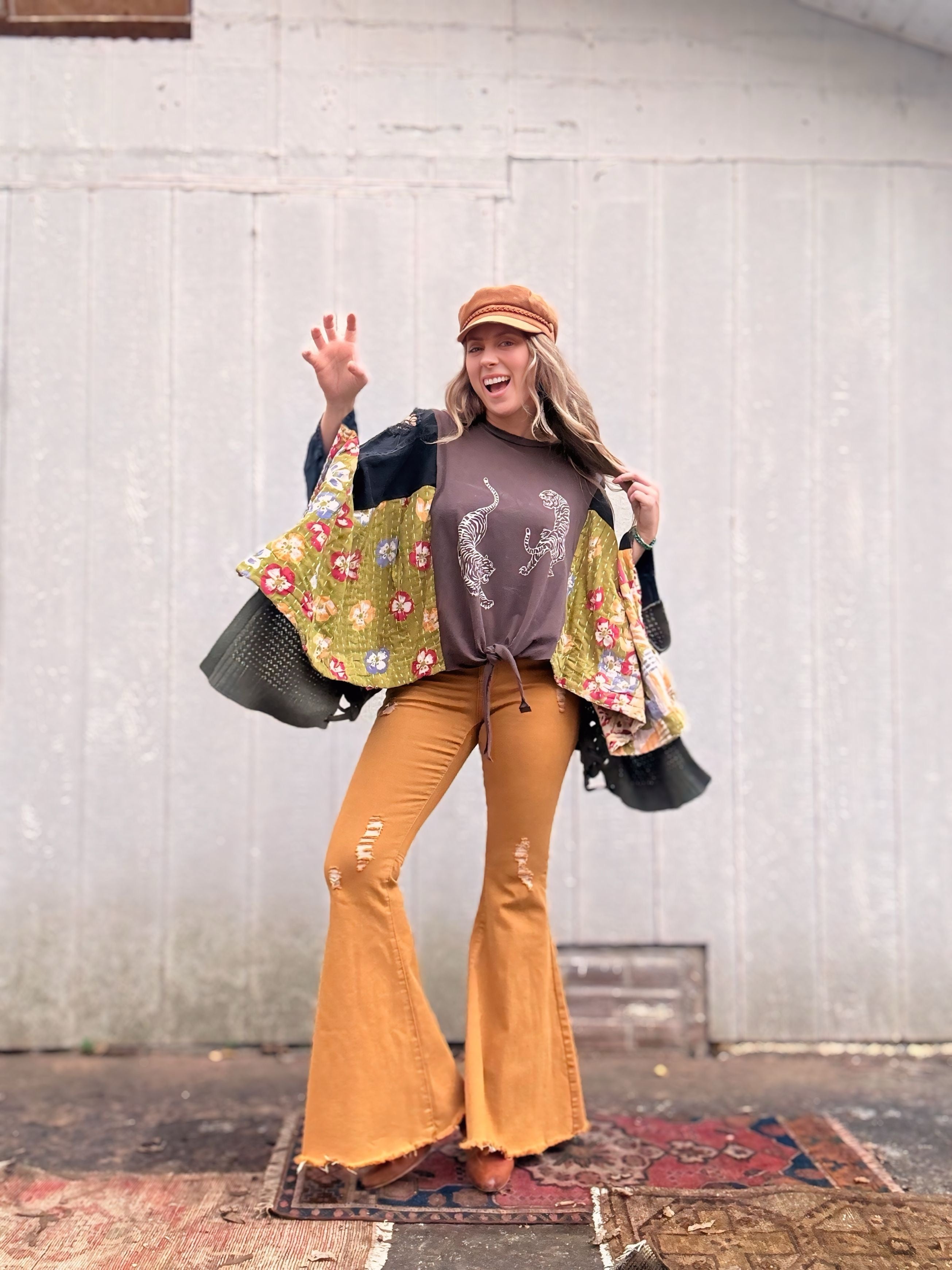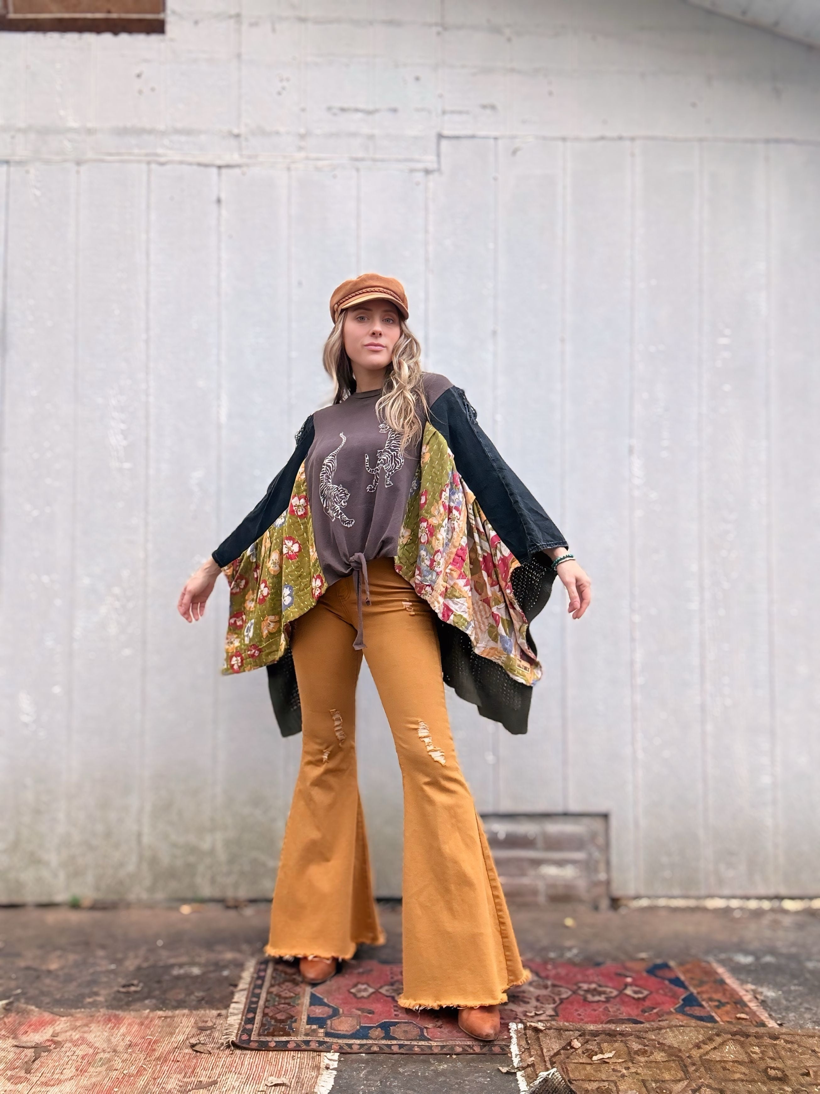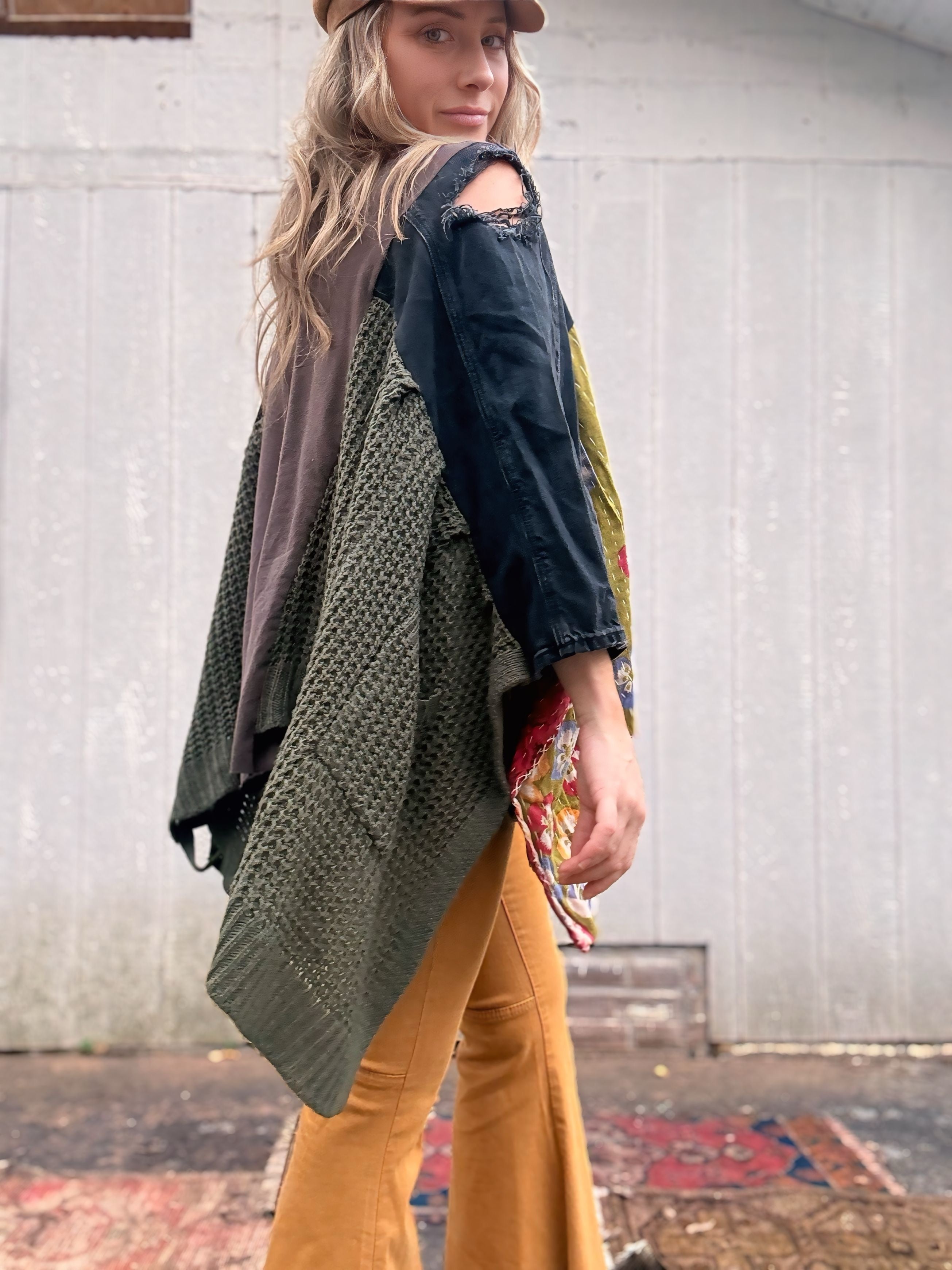Every material we use has already lived a full and vibrant life. We embrace the art of hand dyeing many of our pieces, resulting in unique designs. While you may notice minor stains and holes, these do not compromise the quality of the garment. Instead, we view these imperfections as part of its story, and we hope you find the beauty in them too.